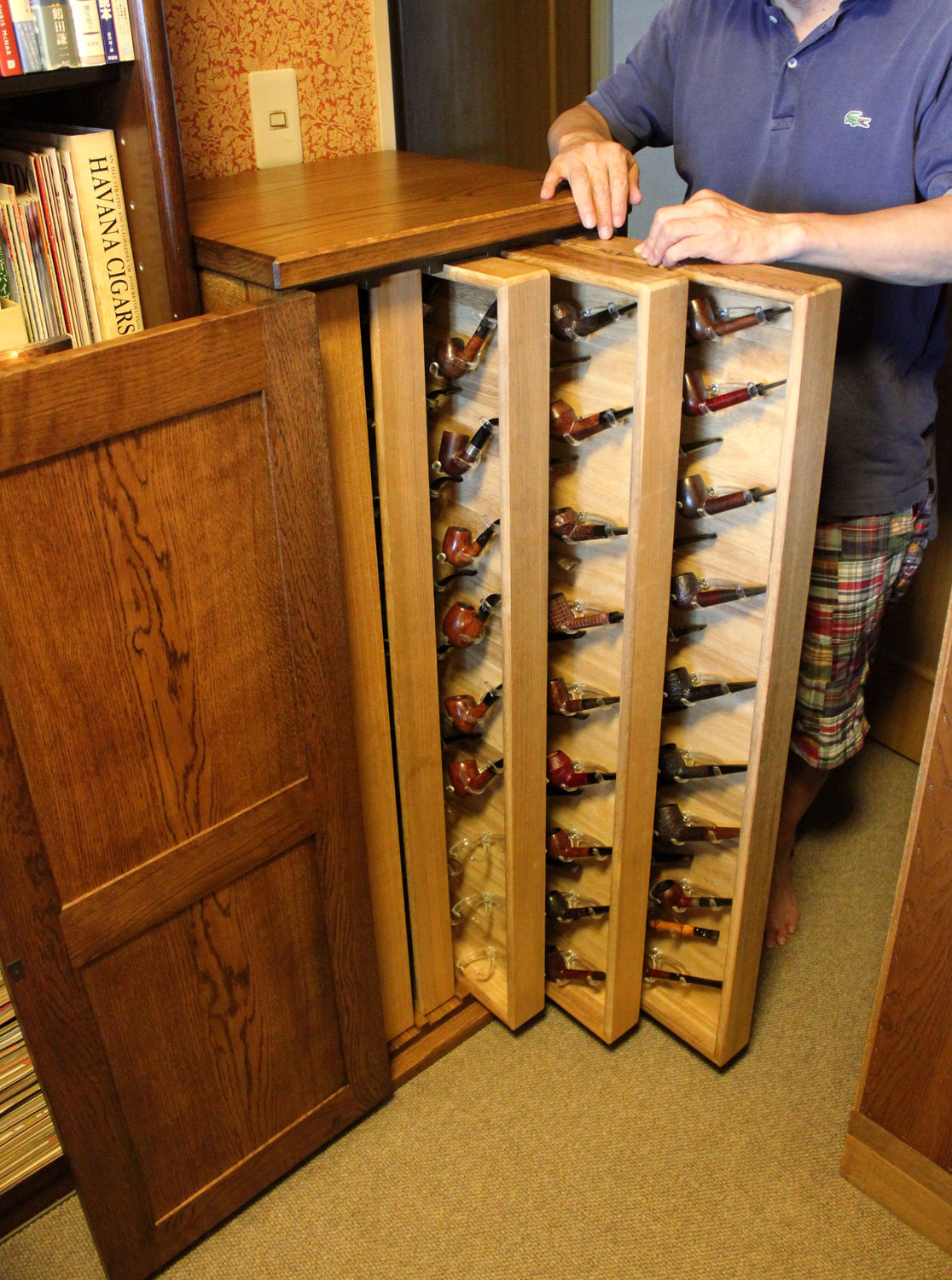さいたま市のA様邸に納めたパイプ収納キャビネットです。 Aさんはパイプの世界では知る人ぞ知る、というくらいのパイプコレクターの方で、つい最近もある男性誌に記事を書かれたそうですよ。