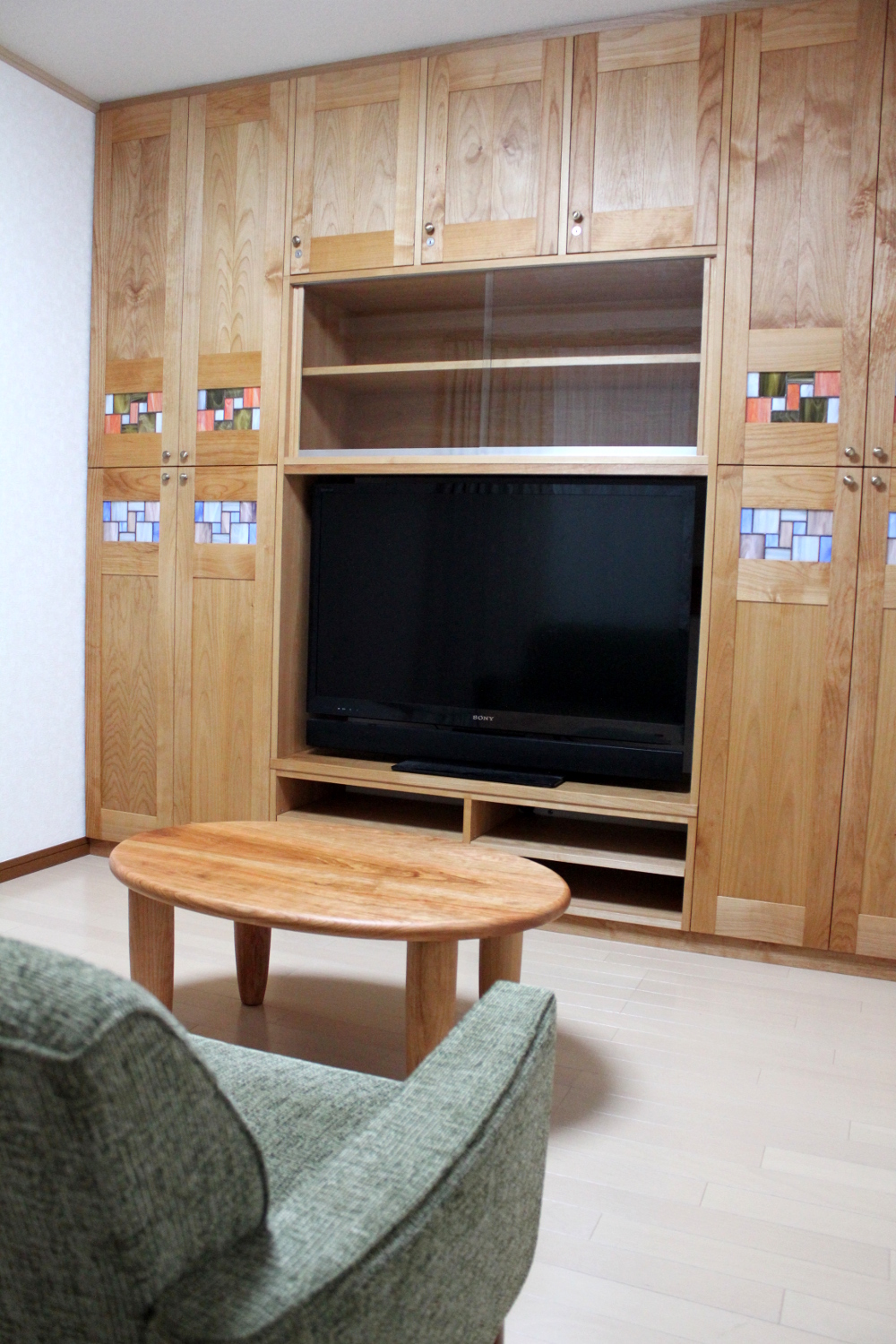 ステンドグラス入りの壁面収納キャビネット(北区・M様邸)