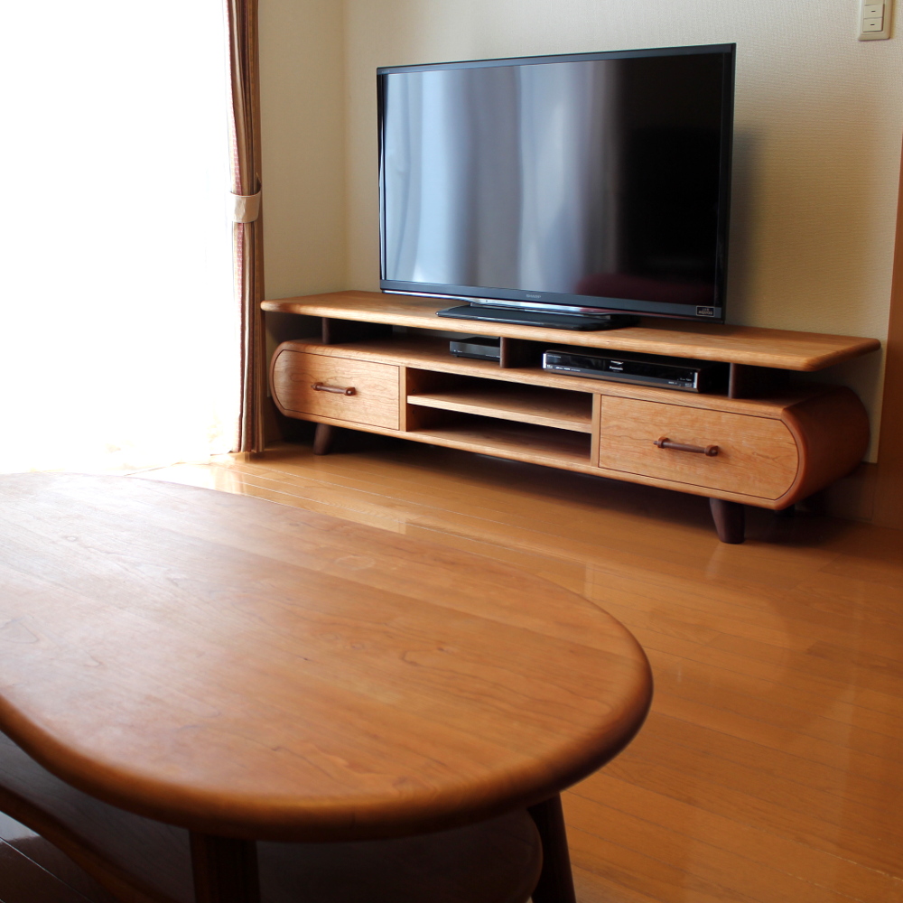 高崎市のI様邸にテレビ台を納品してきました。 I様邸には以前「そら豆型センターテーブル」を納めています。その時にそのリビングルームに似合うテレビ台の提案をご依頼されました。