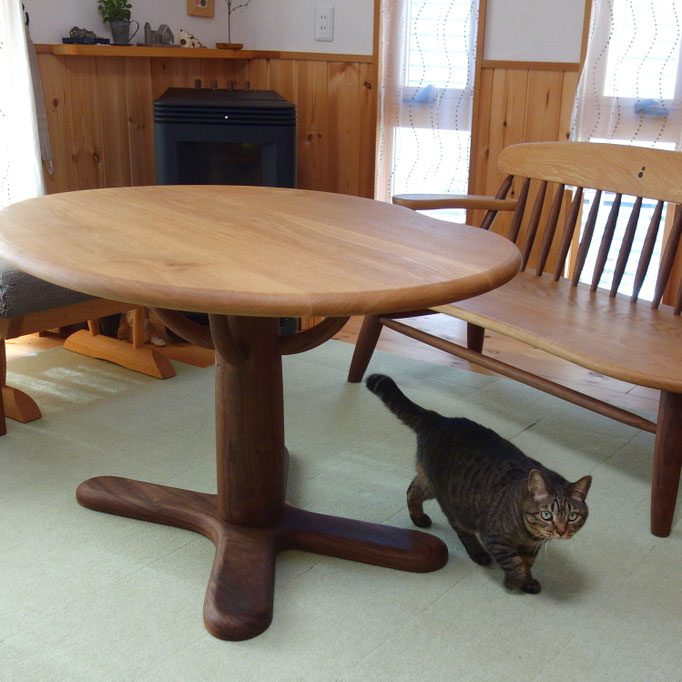 2007年頃から製作し始めたオリジナル定番のそら豆テーブルは無垢の木の温かみをより強く感じていただけるようにと考えてデザインしました。